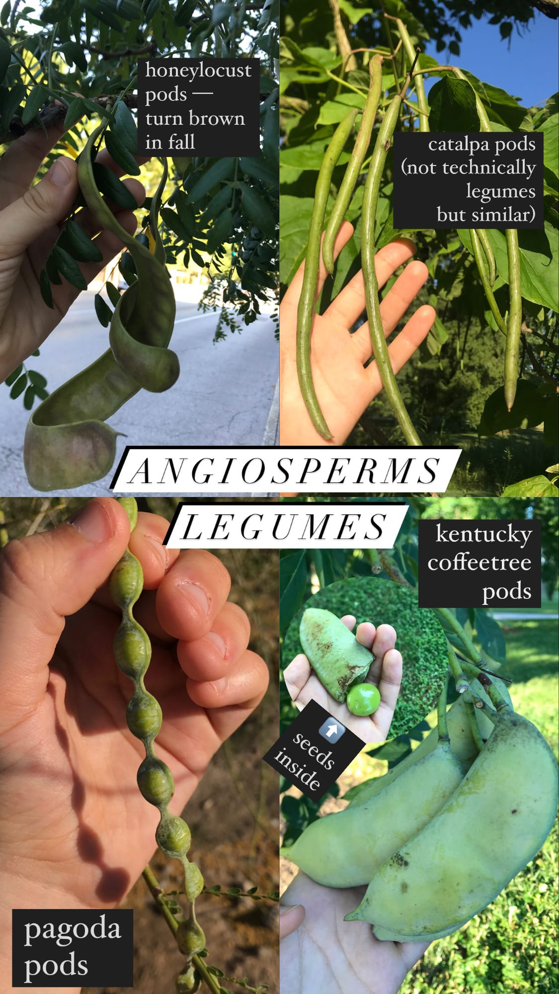 β π»π΄πΆππΌπ΄π that have two part pods with multiple seeds inside like honey locusts, redbuds, kentucky coffee trees, pagodas, and catalpas (catalpas are not actually in the legume family but have similar pods).
