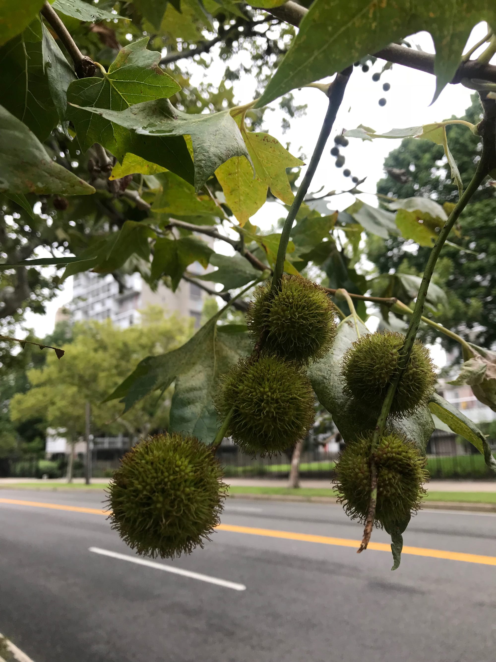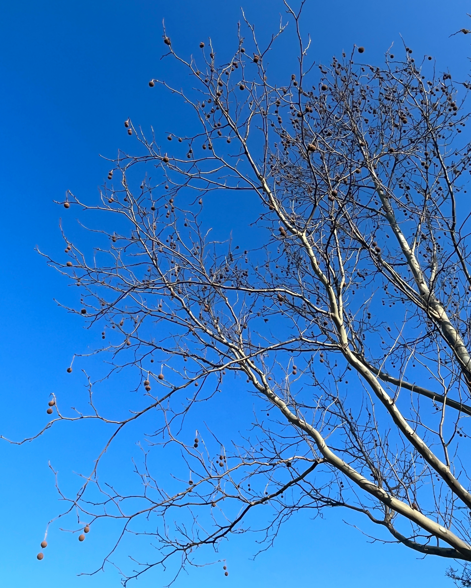 looking up at a london planetreeβnotice the multiple fruit (seed) ball chains