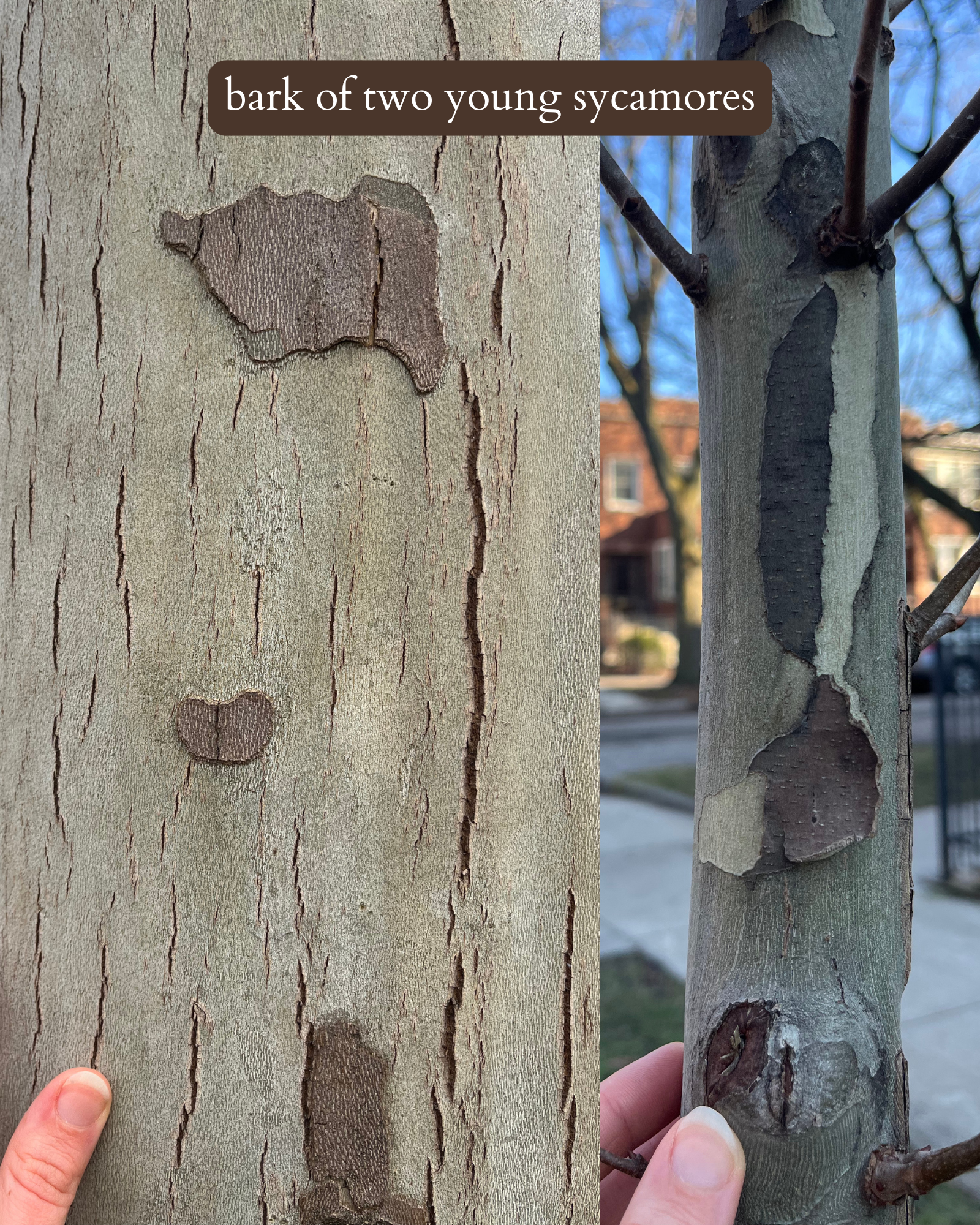 american sycamore barkβyoung to mature (left to right)