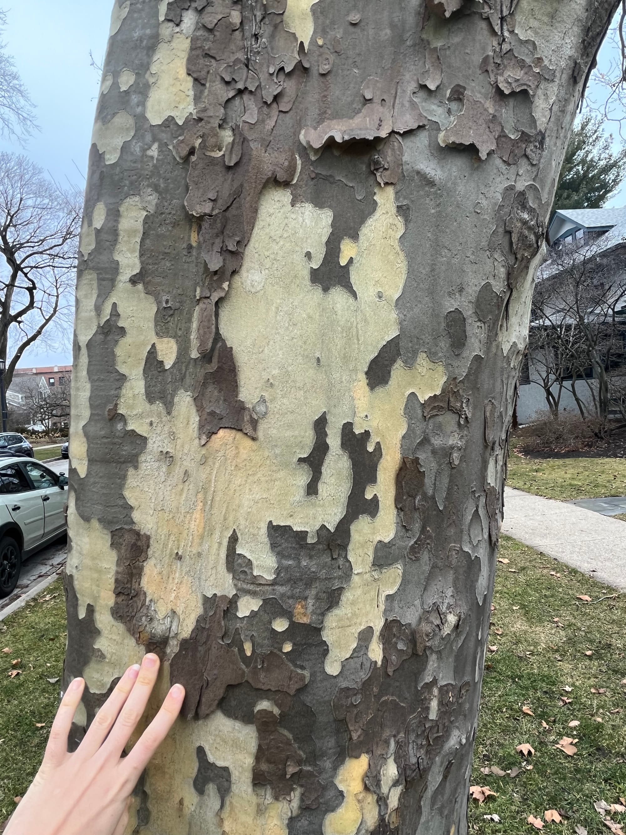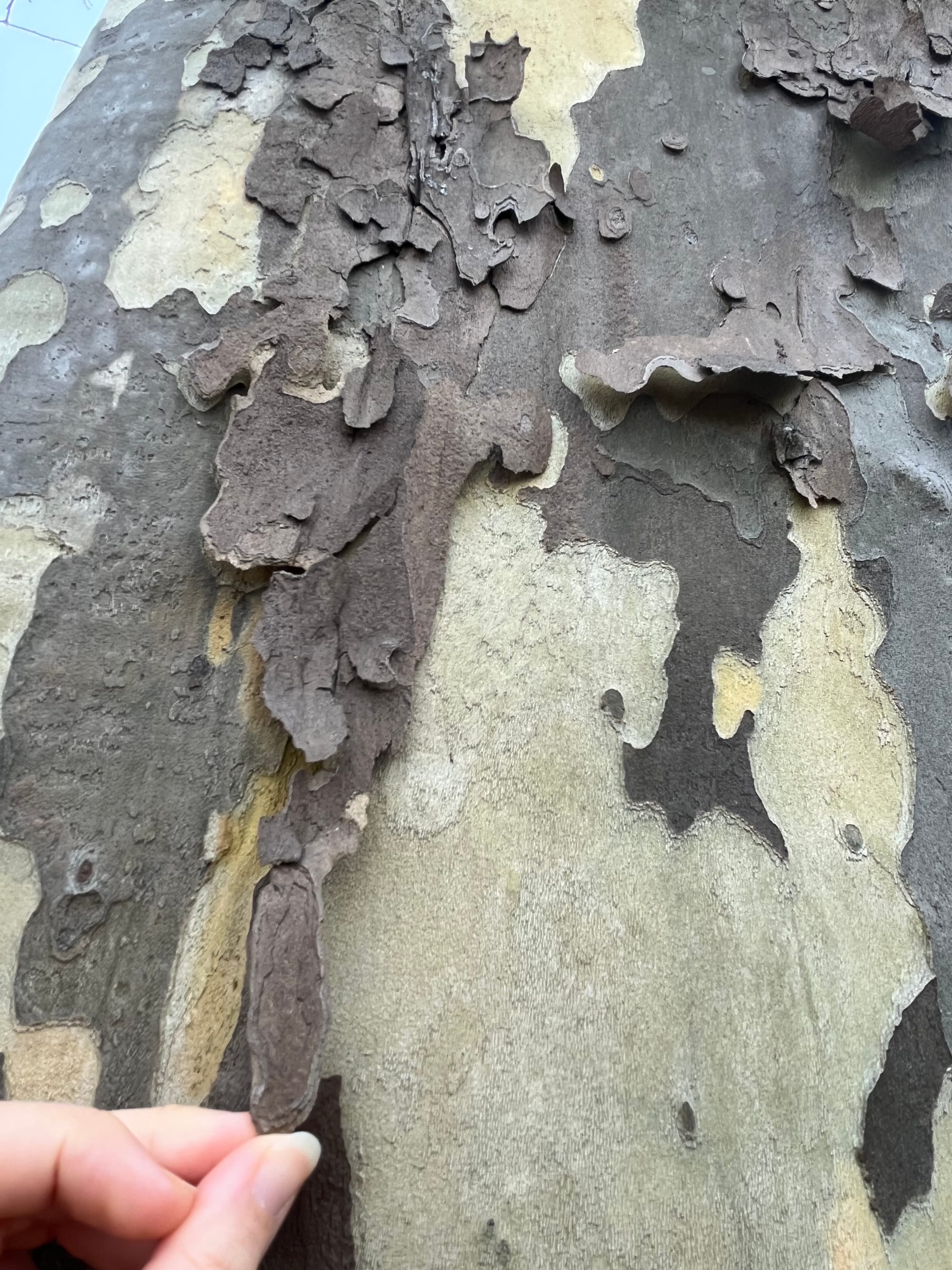 peeling, mottled, american sycamore bark